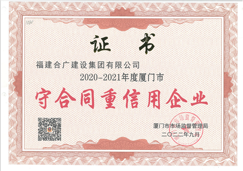 福建合廣建設集團有限公司,注冊資本5188萬元人民幣,公司位于廈門市同安區鳳山一里151-17號。本公司成立于2013年,公司具備市政公用工程、水利水電工程、房屋建筑工程、公路工程、園林綠化等多專業施工資質。企業從業人員100多人,各類專業技術人員70多人,其中高級職稱8人,中級職稱40多人,一級建造師6人,二級建造師15多人。